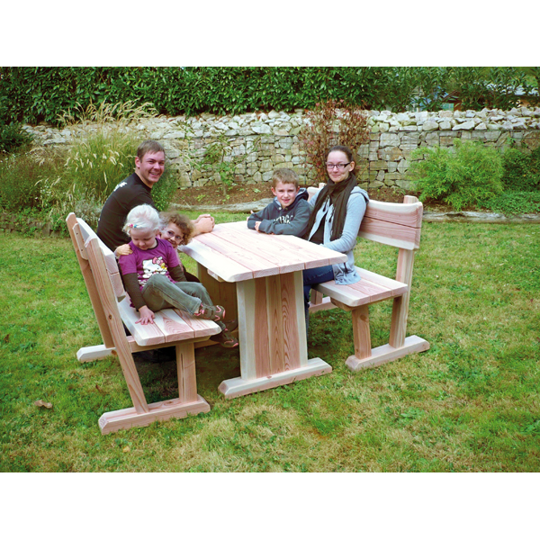 … Spielen, Essen, Reden, Ausruhen. Die massiven Bänke und Tische aus heimischer Douglasie sind auch ohne Wetterschutz sehr gut haltbar. Die Bänke laden ein, sich einmal entspannt zurückzulehnen – extra lange Bankfüße sorgen für stabilen Stand. Durch Witterungseinflüsse wird die Oberfläche silberfarbig. Hergestellt in Deutschland. 5 Jahre Garantie. Lieferung erfolgt zerlegt bzw. als vormontierte Einzelteile.
