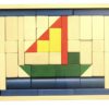 Der Baukasten Fisch besteht aus 70 Buchenholzbausteinen im Rastermaß 29 mm.