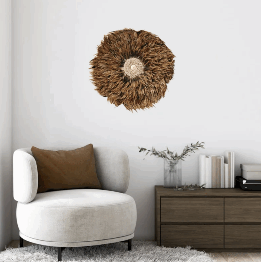 Feder-Wandschmuck braun, 3er Set Boho Style