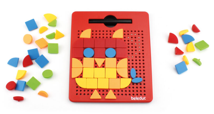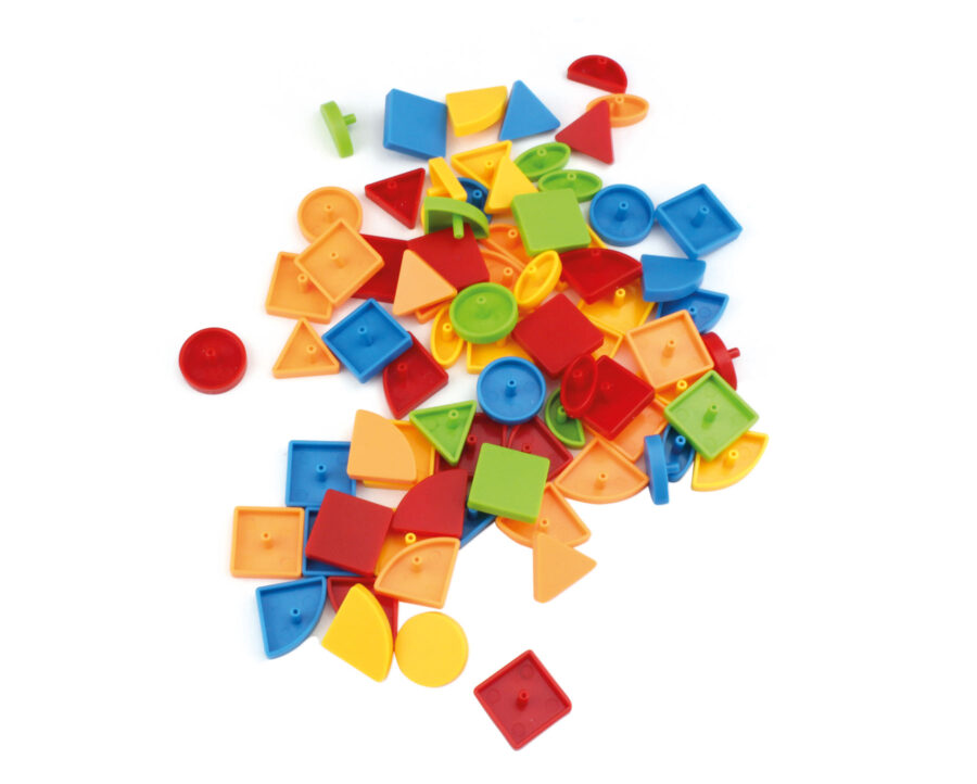 Diese Steckformen sind die ideale Ergänzung zum Magnetboard. 110 geometrische Teile in 6 Formen und 5 Farben, welche sich ganz einfach ins Magentische Zeichenbrett stecken lassen und so eine erweiterte Spielform bieten.