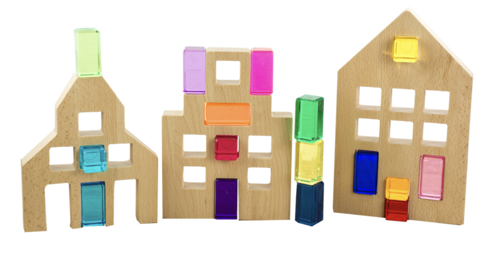 … Mit diesen drei großen Häusern ist eine kleine Stadt ganz schnell aufgebaut. Die Fenster können mit bunten Acryl Steinen (120-771 bitte separat bestellen) ausgefüllt werden, die ein zauberhaftes Licht-Schattenspiel erzeugen.