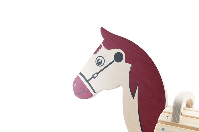 Das Pony Duply Woody besticht durch die hochwertige Verarbeitung, eine ansprechende Bemalung und einen stabilen Stand. Ein Holzgriff ermöglicht es den Kleinen, sich am Widerrist festzuhalten.