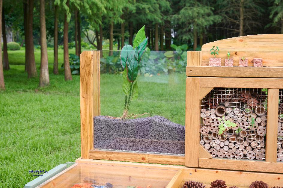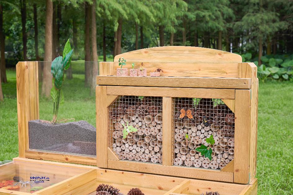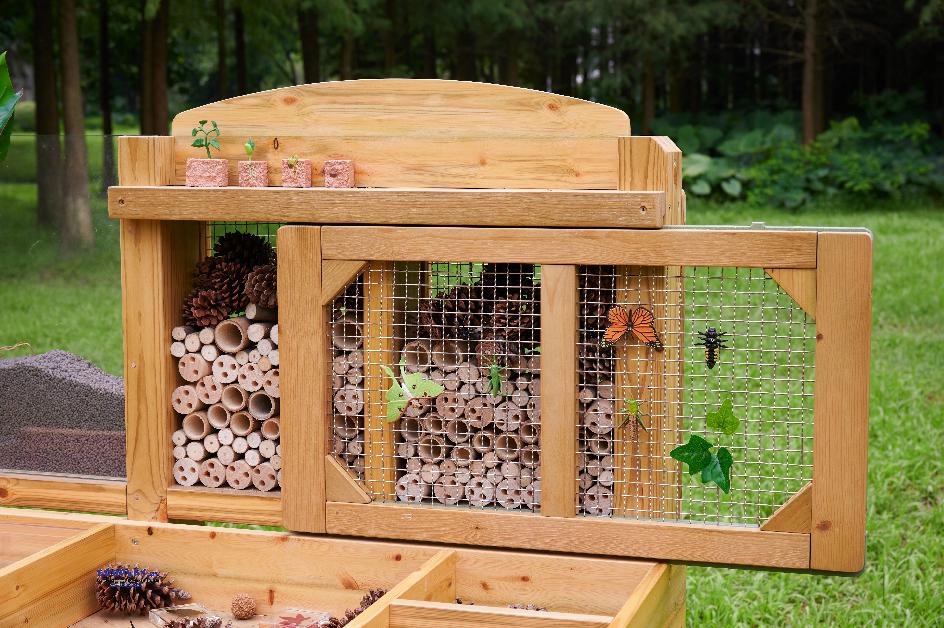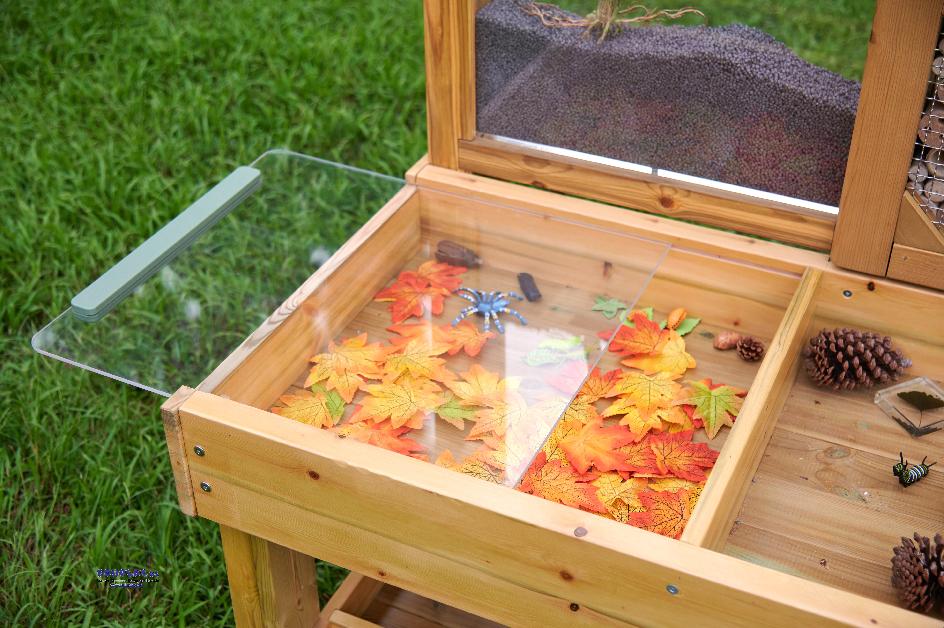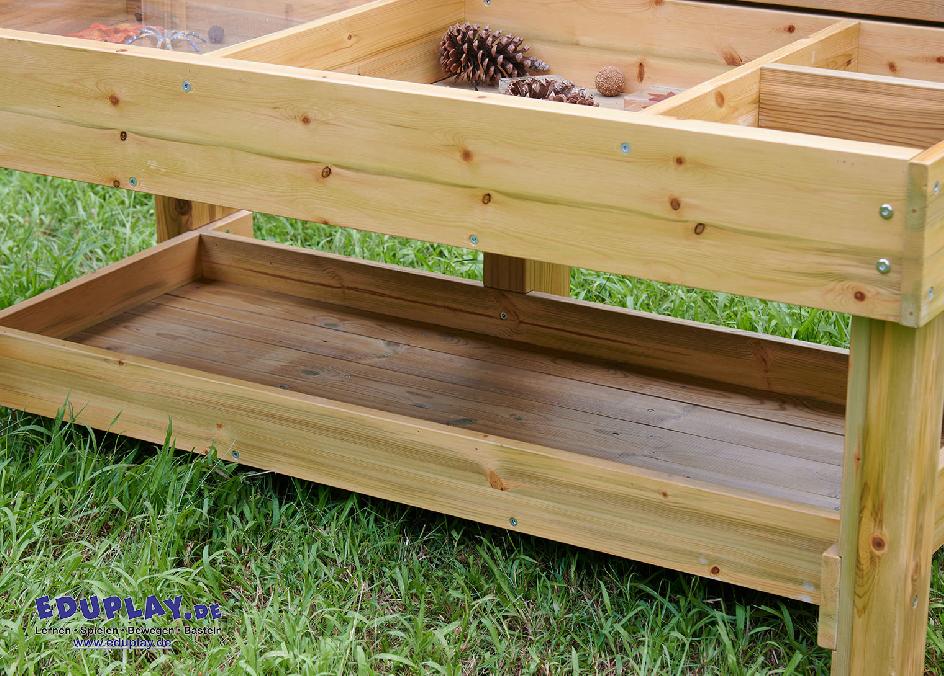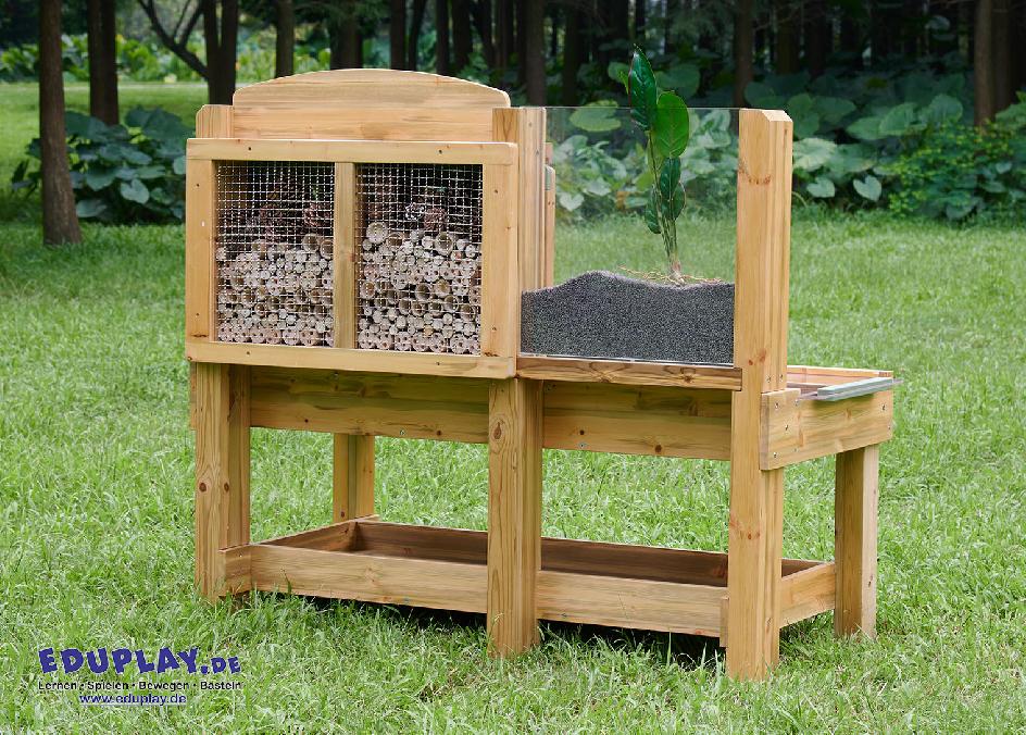 eröffnet vielfältige Gelegenheiten zur Naturbeobachtung und zieht Wildtiere in Ihren Garten an. Die Sitzfläche ist in verschiedene Fächer für Fundstücke gegliedert.