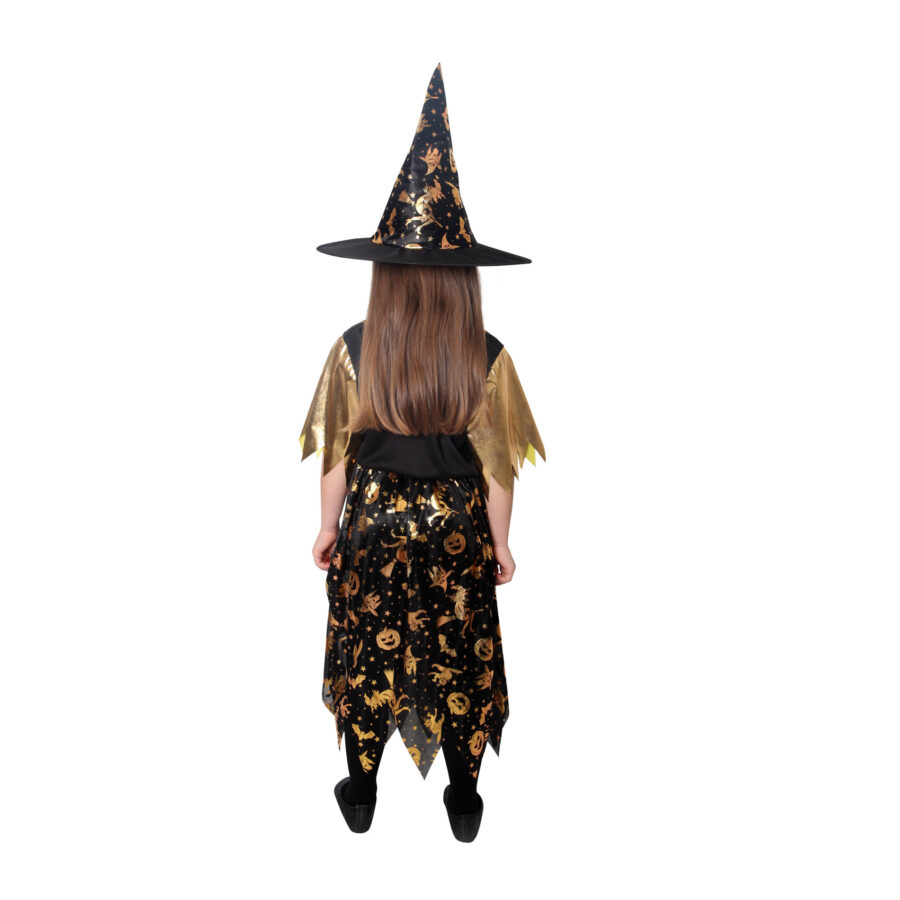 Verkleide deine kleine Hexe in diesem bezaubernden Kostüm, das mit goldenen Halloween-Motiven verziert ist!