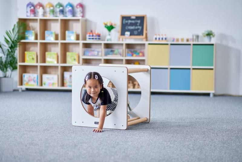 Der beleduc Kletterwürfel mit runder Öffnung motiviert Kinder zu Bewegung und schult ihre Motorik. Sie können darauf klettern oder durch die Öffnung krabbeln.