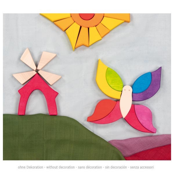 Im Rahmen ergeben sie einen Schmetterling, im freien Spiel sind der Kreativität aber keine Grenzen gesetzt.