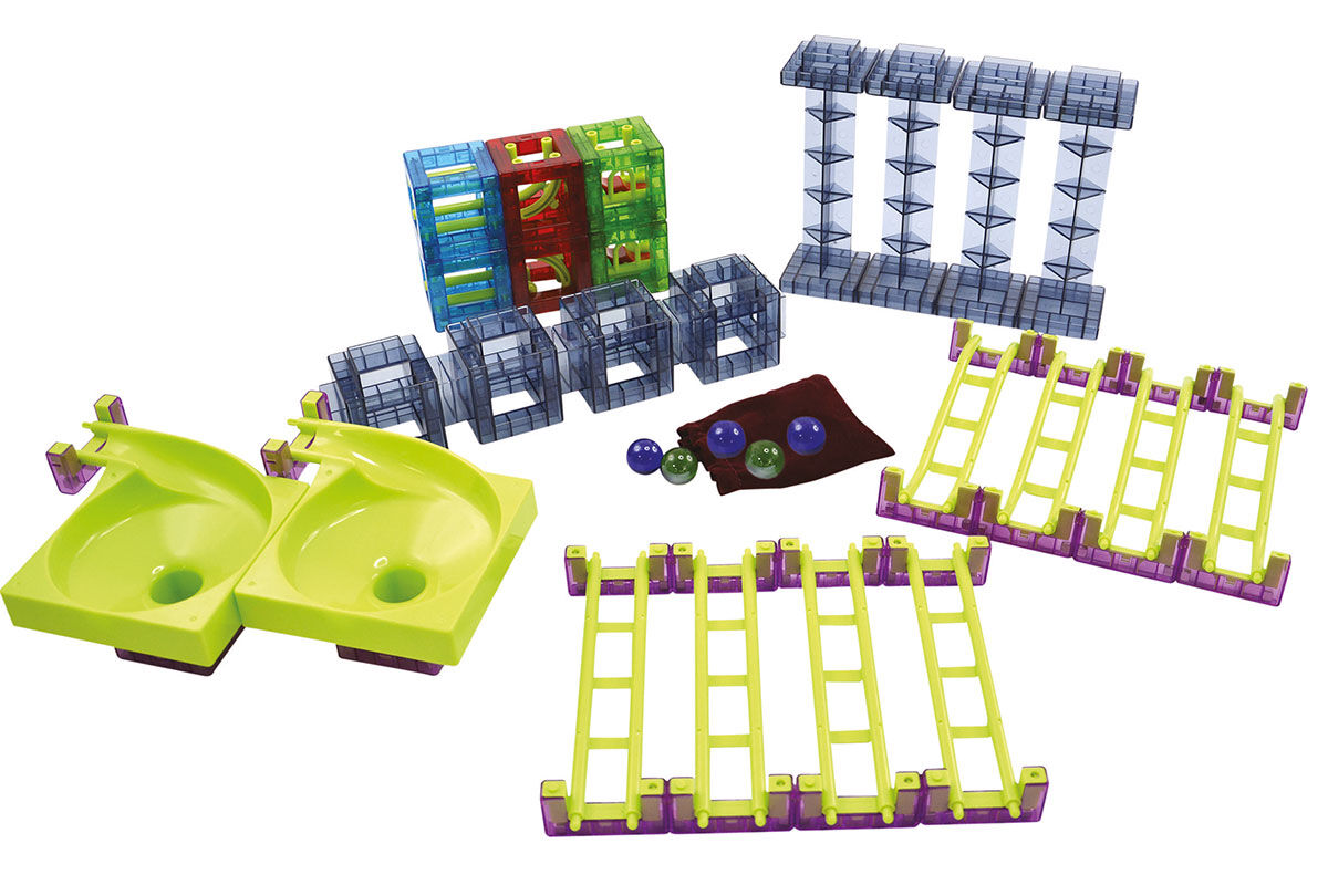 Auf spielerische Weise lernen die Kinder die Grundlagen der Physik. Es wird deutlich, dass die Struktur der Strecke langsamer wird, jedoch auf abfallenden Elementen beschleunigt wird. Bei der Konstruktion der Bahn wird ihnen klar, welche Kombinationen die Schwerkraft zulässt und welche nicht.