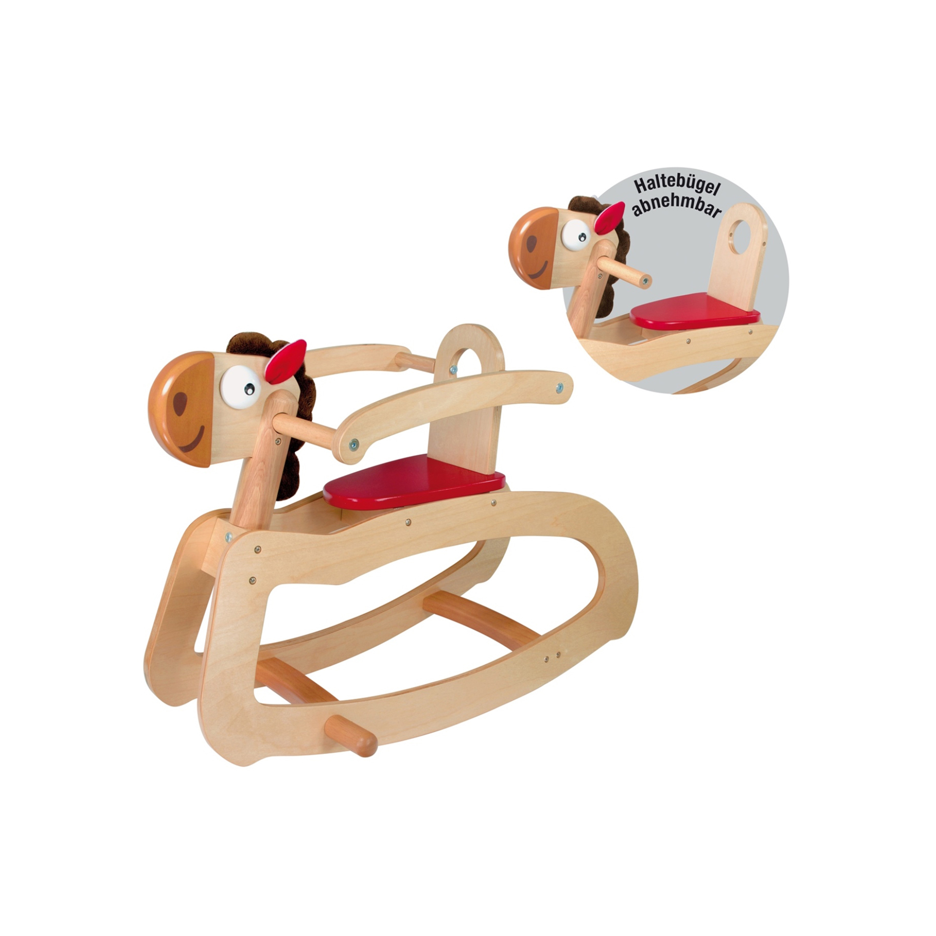 Gefertigt aus Gummibaumholz und mit abnehmbaren Haltebügeln. Geeignet für Kinder ab 24 Monaten. Sitzhöhe: 37cm.