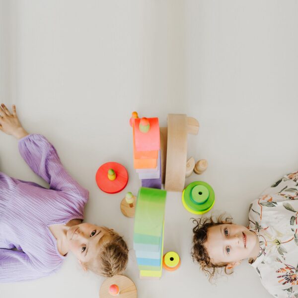 Eine Win-Win-Situation für Groß und Klein! Mit dem Scheibenturm können Kinder verschiedene Formen und Farben sortieren, stapeln und zu eigenen Kreationen zusammenfügen.