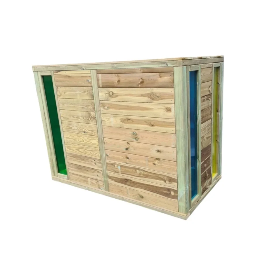 Dieses besondere Spielhaus ist darauf ausgelegt, unbegrenzt erweiterbar und mit weiteren Modulen verbindbar zu sein, sodass eine persönliche und abwechslungsreiche Spielumgebung entsteht.