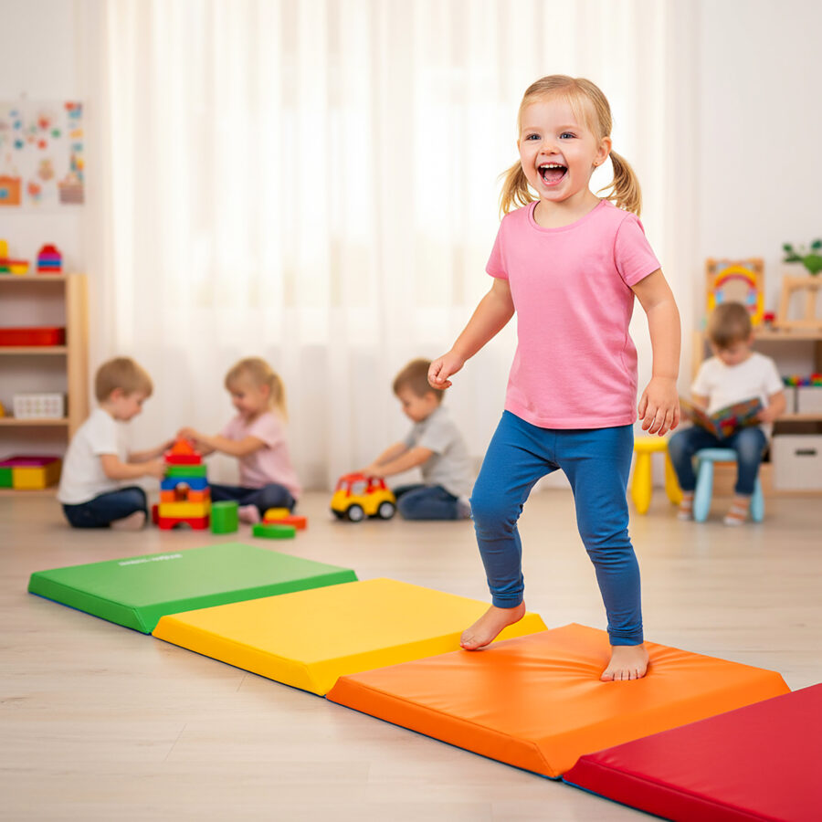 Somit eignet sich die Matte hervorragend für den Einsatz in Bewegungsbaustellen oder Spiellandschaften. Aufgrund des Aufbaus ist die Oberseite nicht zur Nutzung als Sitzgelegenheit oder Kletterelement geeignet.
