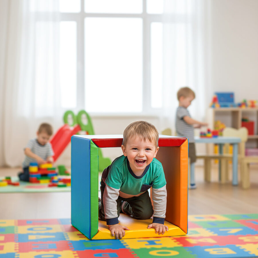 Die Sport-Thieme Turn- und Spielmatte „Cube“ eröffnet zahlreiche Spiel- und Bewegungsideen im Kinderturnen. Als Multifunktionsmatte überzeugt sie durch 4 miteinander verbundene Segmente in unterschiedlichen Farben.