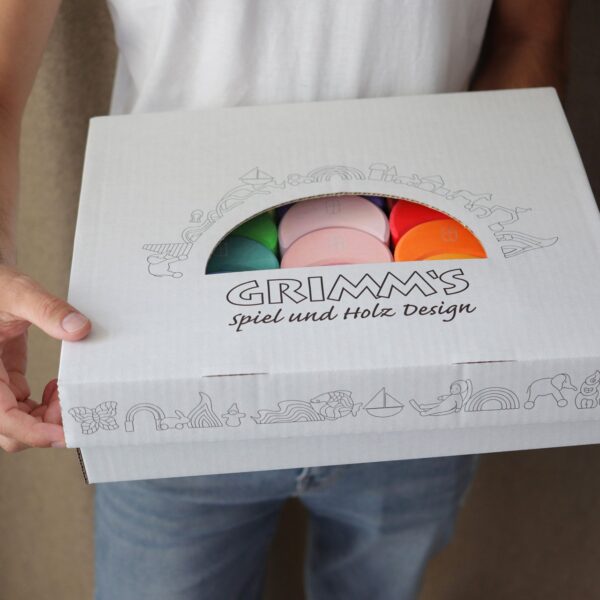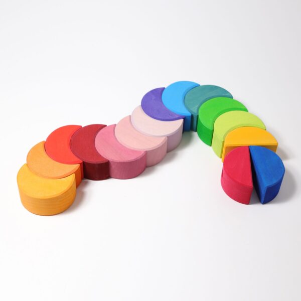 Durch das Stapeln der Halbmonde auf kreative Weise, förderen Kinder spielend ihr Gefühl für Balance und Gleichgewicht. So entstehen immer wieder neue, wackelige Konstruktionen, die die Motorik der Kleinen fördern und fordern.