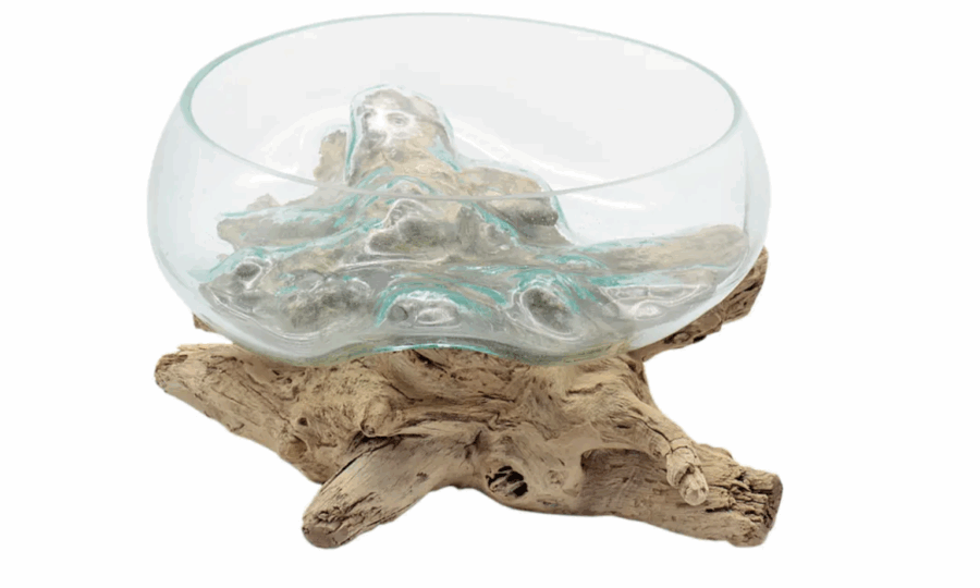 Liqva Teakholz Wurzel mit Glasschale, ca. 35 cm Durchmeser