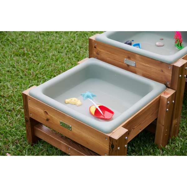 Artikelnummer: 11-ME31006 Kategorien: Aktion, Forschen & Experimentieren, Hort, Kindergarten, Outdoor, Sand- & Wasserspielzeug, Spiel und Spaß Schlagwörter: experimentieren, gemeinsam spielen, Hort, Kindergarten, Kita, Kreativität, Outdoor, Sand, Wasser, WasserlaufDer Außenwasserlauf … setzt sich aus drei gleich großen, flachen Wannen zusammen, die in unterschiedlichen Höhen positioniert sind und so eine Stufenform bilden.Jede Wanne bietet Raum für eine begrenzte Menge Sand, Wasser oder anderer zu erforschender Materialien.Die abgestuften Ebenen motivieren Kinder verschiedener Altersgruppen zum gemeinsamen Experimentieren, um einen Fluss von einer Ebene zur nächsten fließen zu lassen. Das Set ist aus beständigen Materialien gefertigt, die gegen Fäulnis, Schimmel und UV-Strahlung resistent sind, und kann sowohl drinnen als auch draußen verwendet werden.