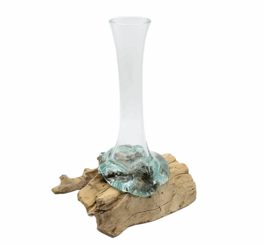 Liqva Wurzel Teakholz mit Glas-Vase,